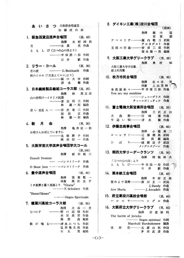 第1回合唱祭(昭和39年)のプログラム